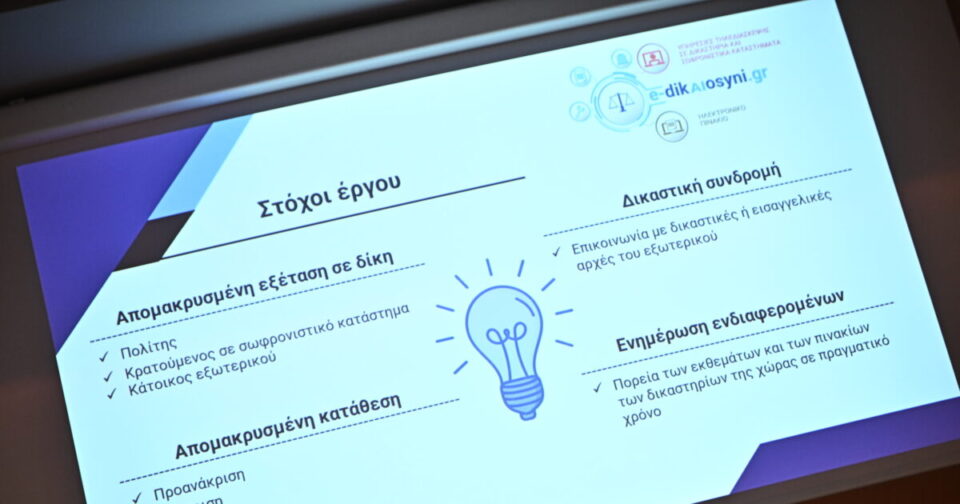 Και τα δύο αυτά έργα υλοποιούνται με την συνεργασία του Υπουργείου Δικαιοσύνης και του Υπουργείου Ψηφιακής Διακυβέρνησης και Τεχνητής Νοημοσύνης.
