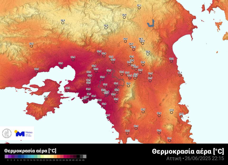 Η κατάσταση είναι πολύ χειρότερη στα μεγάλα αστικά κέντρα με την θερμοκρασία να μην καταφέρνει να υποχωρήσει ακόμη και κάτω από τους 30°C σύμφωνα με το meteo.